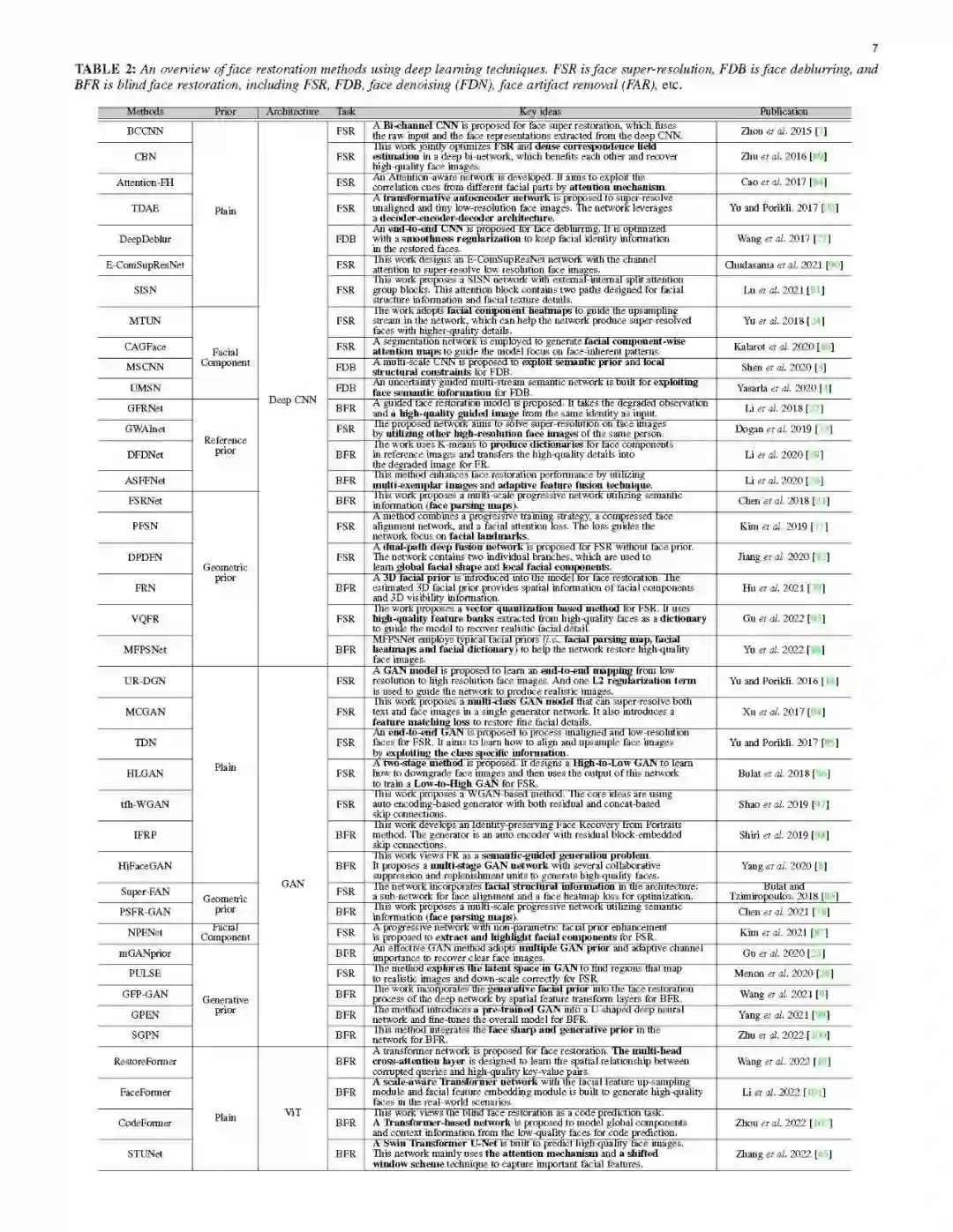 现有的最先进的网络是通过专注于面部先验、预训练GAN模型和Vit架构来设计的