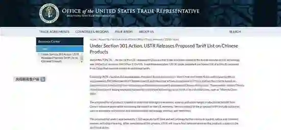 美国贸易代表办公室网站截图