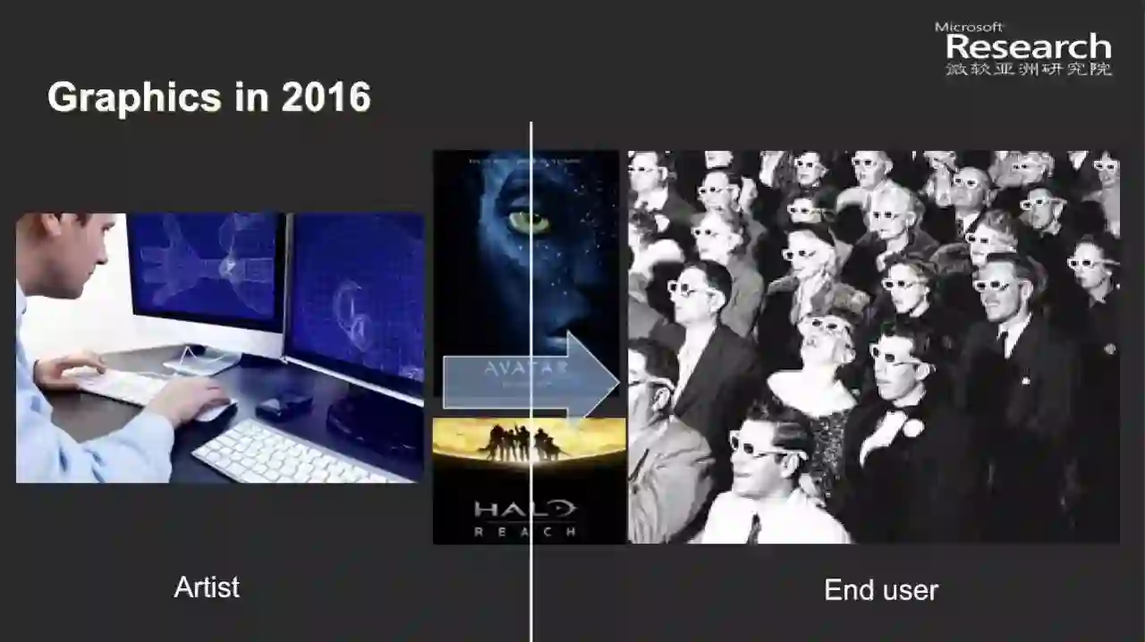 【新智元导读】微软亚洲研究院网络图形组培养了一大批中国图形学的人才。其首席研究员童欣,内部人称“童姥”,近日接受了新智元专访。在微软做了近20年图形的他认为,计算机图形跟计算机视觉是一对“好基友”,深度学习尚未席卷计算机图形学,但格局很快就要被打破了。图形的风口需要创造。童欣还介绍了微软今年在SIGGRAPH上发表的三篇和深度学习有关的图形研究。最后谈到跟图形息息相关的VR/AR,他表示:VR只是媒体而AR是平台,四大技术快速发展,爆发期将近。