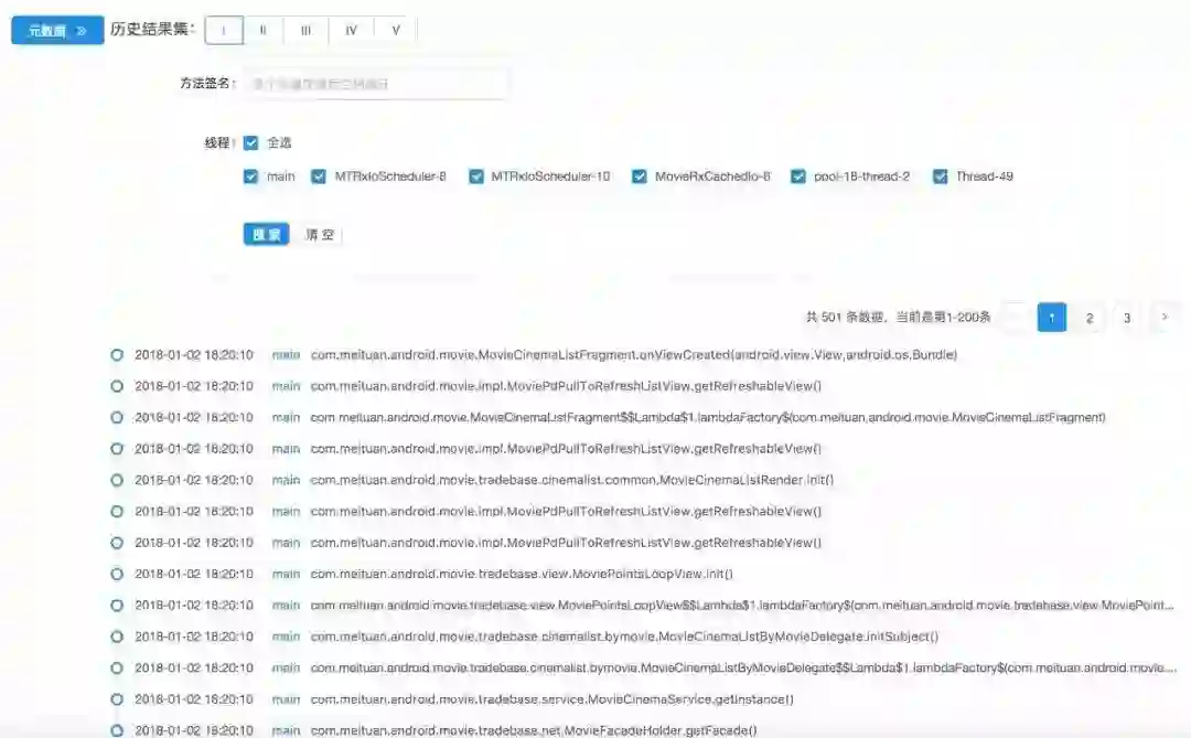 日志回捞到Trace平台上按时间顺序排列展示结果: