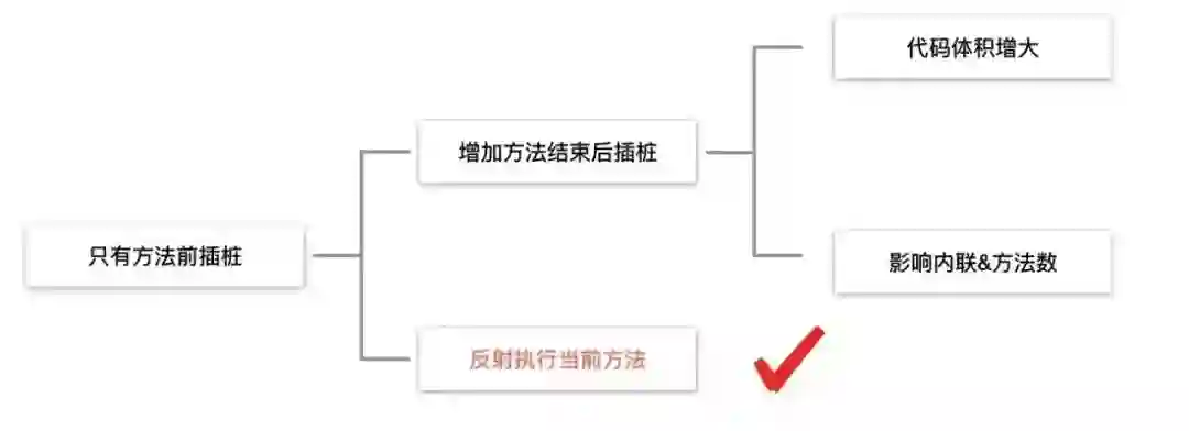 在方法后执行Lua脚本遇到了一些问题,我们只在方法前插桩,如果在方法后也插桩这样能解决在方法后执行的问题,但是这样增加代码体积和影响proguard内联方法数,如何解决这个问题如下: