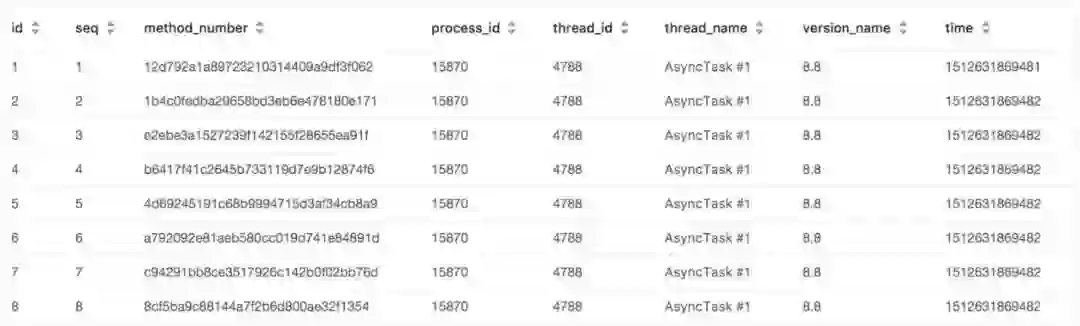 我们已经过滤掉了大部分的干扰日志,但还是会有一些代码执行比较频繁的方法会产生干扰日志。例如:自定义View库、日志类型的库、监控类型的库等,这些方法的日志会影响我们DB的存储空间,造成保留不了太多的正常方法执行路径,这种情况下很有可能会出现开发这关心的日志其实已经被冲掉了。怎么解决这个问题那?在插桩的时候可让开发者配置一些过滤或者识别的规则来认定是否要处理这个方法,在插桩的方法上增加一个二进制的参数,然后根据配置的规则会在相应的位上设置成0或者1,方法执行的时候只需要一个异或操作就能知道是否需要记录这个方法,这样增加的识别判断几乎对原来的方法执行耗时不会产生任何影响,使用这种方案产生的日志就是开发者所期望的日志,经过几番测试之后我们的日志也能保留住用户6次以上的完整行为,而且CPU的占用时间也降低到了5%以内。