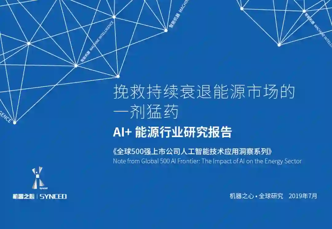 根据机器之心不完全统计,能源行业超过 75% 的全球 500 强企业自 2013-2018 年间开始尝试使用人工智能技术,并有多家企业在 2016 年人工智能浪潮后完成智能化转型,并确定以人工智能技术为主要发展方向的公司策略。