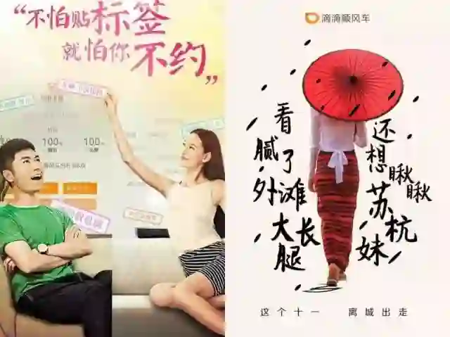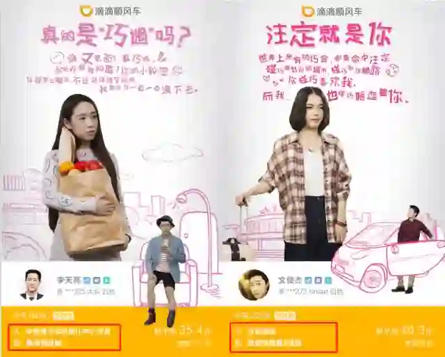 在以后的宣传中,滴滴又多次以男女交友为主题,推出“注定就是你”“真的是巧遇吗”“10分钟换来一辈子”等广告。文案中充满“约、喜欢、暗恋、喜欢”等词,无不在暗示情与爱的主题。