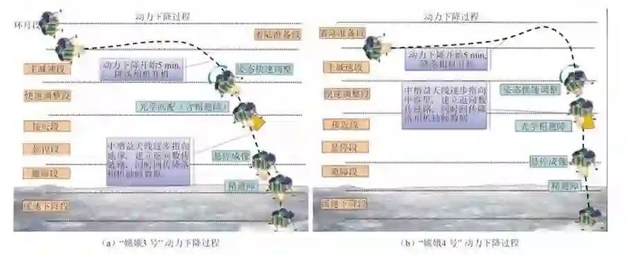 据专家介绍,嫦娥三号在下降的过程中,参考了Apollo系列和ALHAT计划的设计。整个动力下降过程分为6个阶段:主减速段、快速调整段、接近段、悬停段、避障段和缓速下降段。