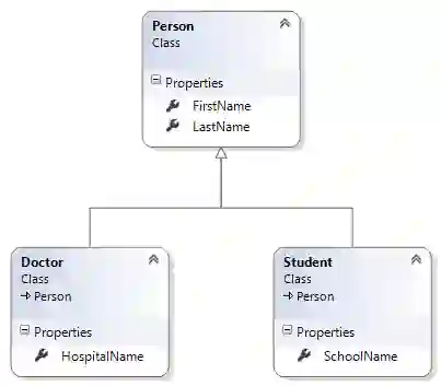 Person类是一个父类,Doctor类和Student类是Person类的派生类。Doctor类中持有的HospitalName属性,Student中持有的SchoolName属性。