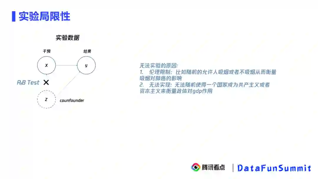 既然如此,这类问题我们都用实验解决不就可以了吗?事实上,存在一些无法实验的原因,比如伦理限制、无法实现、历史遗留等。因此我们不得不借助观测数据上的因果推断来得到因果效应。