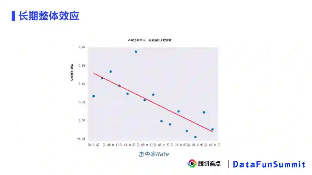 我们发现,我们构造的Rate越大,活跃天数下降得越多。也就是长期来看,一段时间内被启动重置打断的次数比例越高,那么其击中活跃天数越低。这样,我们就解决了长期效应的问题。