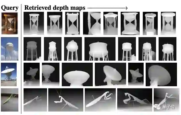 比如面对最左边的图像,它可以从深度图、单视觉3D图和视频数据集中搜集出与之最匹配的结果。