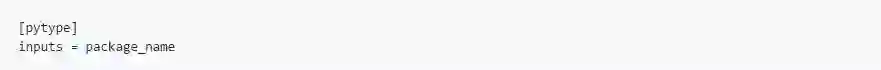 要在整个包上设置pytype,请将以下内容添加到包上级目录中的setup.cfg文件中,用包名替换package_name: