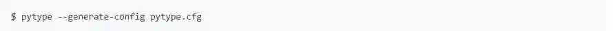 为了方便起见,你可以将你的pytype配置保存在一个文件中。配置文件是一个带有[pytype]部分的INI-样式的文件;如果没有提供显式配置文件,pytype会从当前目录向上遍历查找第一个setup.cfg文件中的[pytype]部分。
