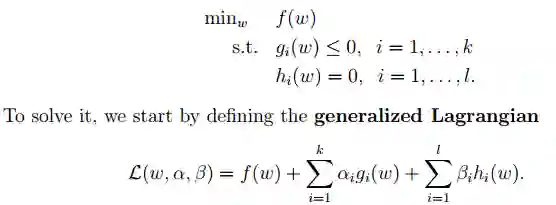 我们只需要最小化上述目标函数,其中的α为原始优化问题中的不等式约束拉格朗日系数。