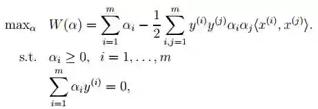 而这个函数可以用常用的优化方法求得α,进而求得w和b。