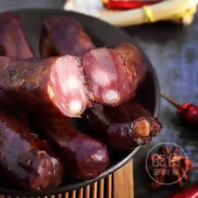 另外,还有一个特别值得推荐的就是排骨香肠。排骨香肠是用腌制排骨肉外包肠衣制成的香肠,是近几年川渝地区受欢迎的腊味新贵。比一般肉肠更有嚼劲,吃起来椒香、咸香滋味浓郁,回味十足,根本停不下来。