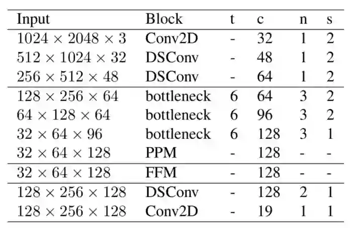 此外,Fast-SCNN使用流行的技术中最先进的模型来保证上述性能,像用在PSPNet中的金字塔池模块PPM,使用反向残余瓶颈层是用于MobileNet V2中用的反向残差Bottleneck层,以及ContextNet中的特征融合模块等。同时利用从低分辨率数据中提取的深度特征和从高分辨率数据中提取的空间细节,确保更好、更快的分割。