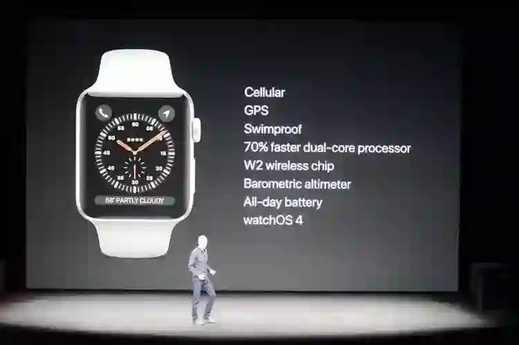 让我们盘点一下 Apple Watch 发布的时间表:2014 年 9 月,苹果发布了 Apple Watch 一代(次年 4 月正式发售),2016 年 9 月 Apple Watch Series 1/Series 2 同步发售,2017 年 9 月 Apple Watch Series 3 发售。