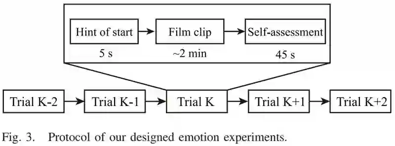 数据记录实验共包括 15 名(8 名女性,年龄在 20~24 岁)被试,均为右利手。每位被试参与实验 3 次,共获得 45 次实验数据。本文使用的数据集(SEED-IV)将作为 SEED [1] 的子集可免费获得用于学术研究。
