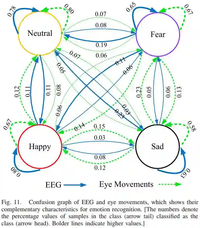 本文揭示了 EEG 信号和眼动信息对于情绪识别的互补特性,并通过使用多模态深度神经网络改善了系统的识别性能。本文运用来自不同实验阶段的训练和测试数据集研究了本文方法的稳定性,并证明了在多次实验内和实验之间的稳定性。