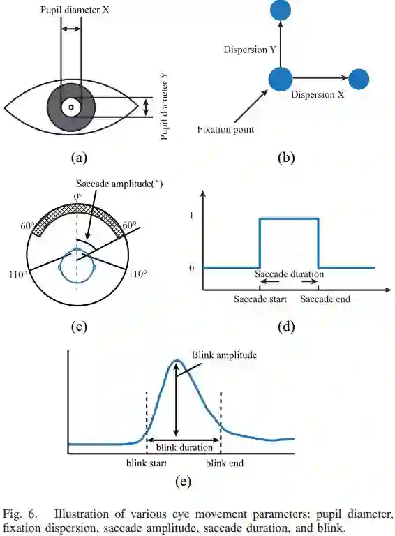 眼动特征的维度为 33,图 6 显示了 5 类眼动参数。