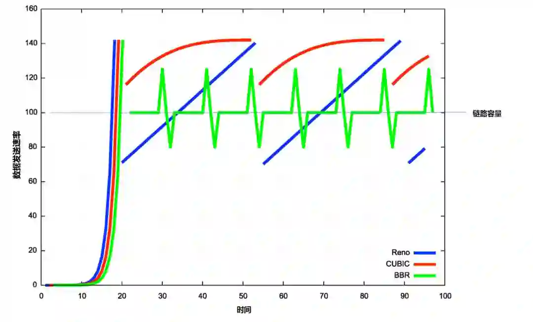 图3 Reno, Cubic和BBR模型对比[35]