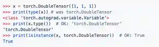 还要注意 Tensor 的 type( ) 不再反映数据类型。使用isinstance()或 x.type()来代替: