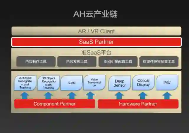 对联想新视界有关注的同学应该记得联想新视界最初是从AR眼镜开始切入市场的。但从这次白总在AWE上的演讲来看,其现在的重心,已经转移到了AH云上,希望通过AH云为纽带来打通从底层技术,设备到最终产业落地应用转化的通路,并以此形成围绕AH云的生态。白总有个观点还蛮有意思的,与很多认为工具类应用不是个很好的投资方向的投资方不同,白总认为在一个新技术逐渐进入市场的过程中,一定会需要经历一个将高新技术转化为一个普通人也能使用的技术的阶段。如果一项技术只有在这个领域的专家才能使用,那产业一定起不来。当技术转化成更多人能够轻松使用的工具的时候,才会有更多的应用场景被发现,最终转化成商业价值。而在这个过程中需要非常多的合作方的参与。需要有对行业有了解的方案商去探索应用场景,会需要硬件提供商提供适用于不同场景的硬件,需要有算法公司,提供底层的AI,CV算法。需要组建提供商,为不同的需求提供专用模块。AH云将会以一个开放的姿态与产业链上的各方合作。