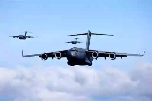 洛克希德C-17远程大型战略运输机,是全天候的大型运输机,能对地球上任何一处地点进行投运。