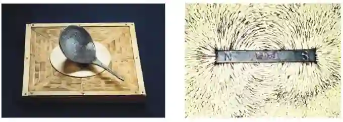 图17 左图为司南———指南针;右图为磁铁及其周围的铁粉