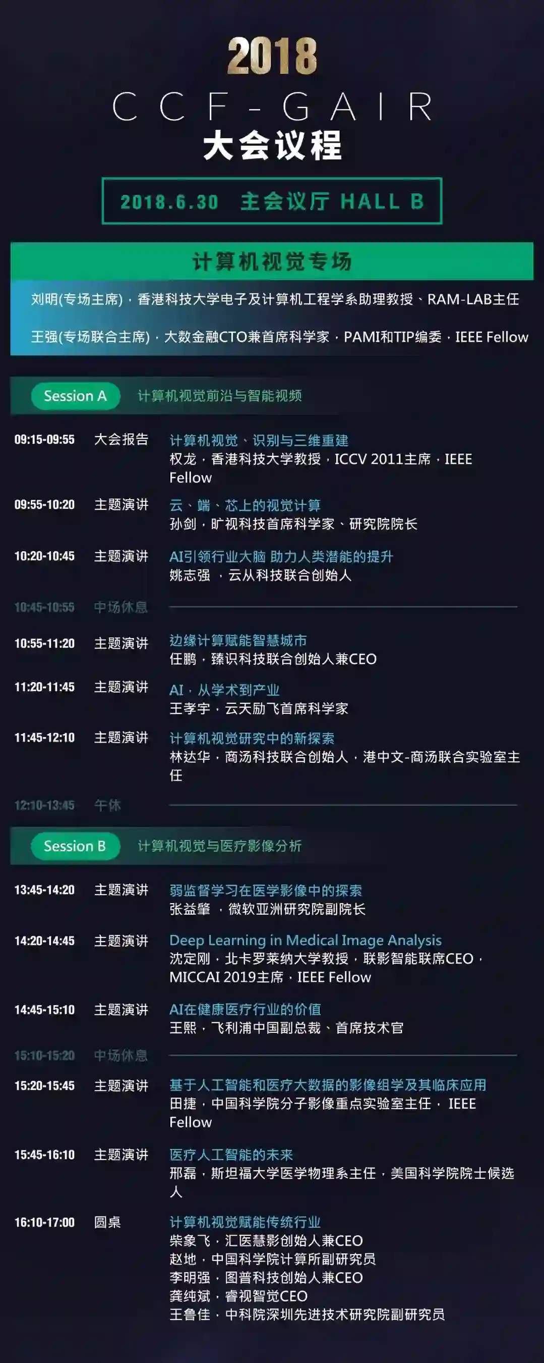 雷锋网 CCF-GAIR 2018 延续前两届的“顶尖”阵容,提供 1 个主会场和 11 个专场(仿生机器人专场,机器人行业应用专场,计算机视觉专场,智能安全专场,金融科技专场,智能驾驶专场,NLP 专场,AI+ 专场,AI 芯片专场,IoT 专场,投资人专场)的丰富平台,意欲给三界参会者从产学研多个维度,呈现出更富前瞻性与落地性相结合的会议内容与现场体验。
