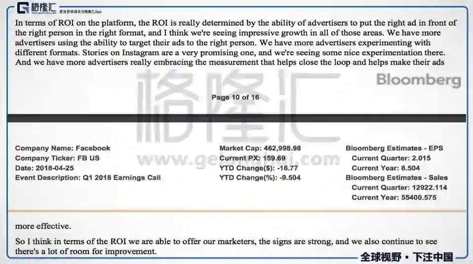 还有一些管理层关于5月25日要实行的欧洲一般数据保护条令的看法,这里就不详细解释了,有兴趣的可以去看一下电话会议。这个还是要持续关注,看一下对FB和谷歌具体实实在在的影响到底有多少。