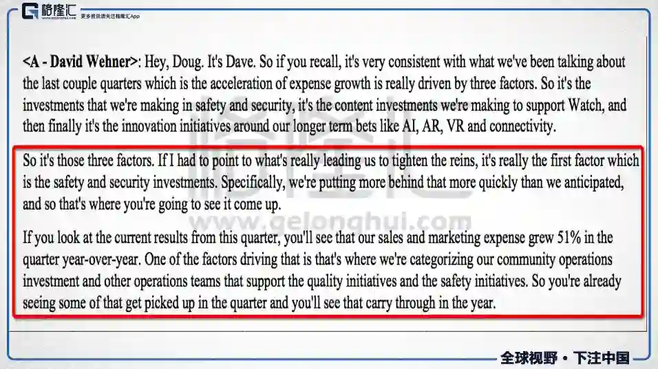 管理层电话会议里给的解释是:新闻质量和安全的投资计入了这一部分。