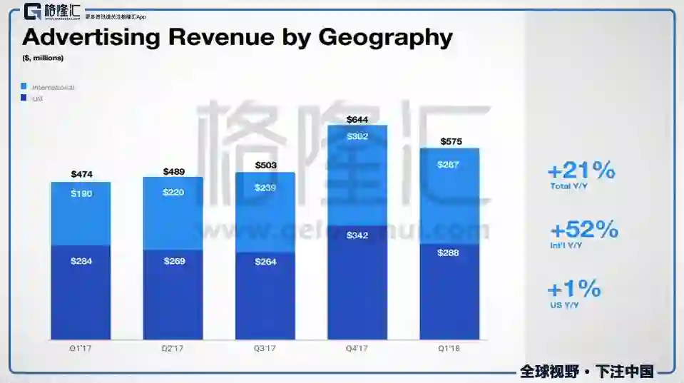 twitter财报的致命伤就是这张图:北美的广告收入同比增长1%。在谷歌广告收入增速24%,FB增速49%的情况下,Twitter的广告收入增速1%。不用多少了吧。你国际业务多强都没有用,因为北美就是全球广告市场的缩影。