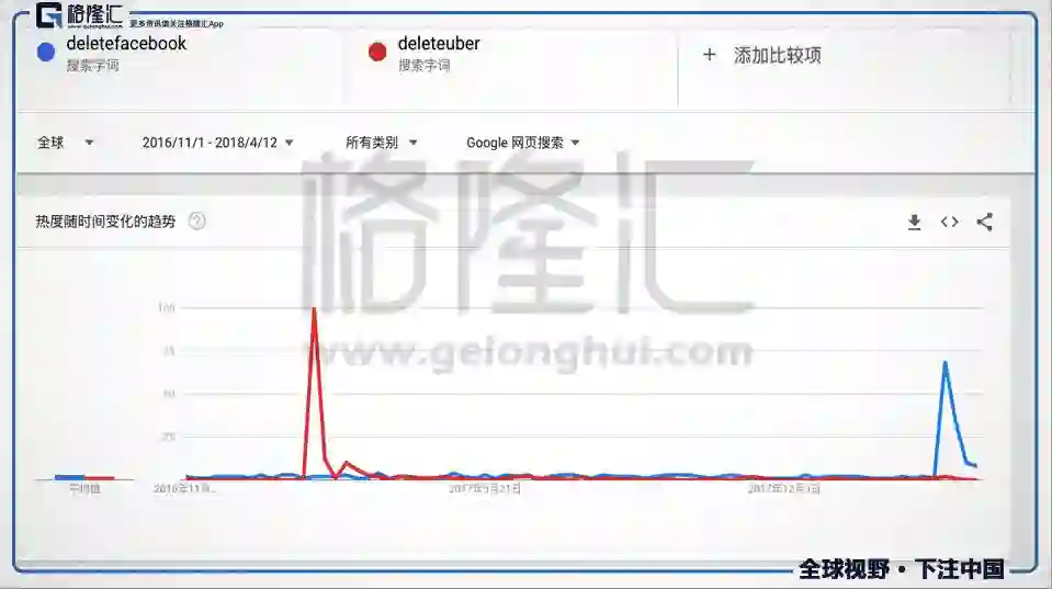 上图是删除uber和删除FB google trends上的热度变化。这种当事人没有真正违法的丑闻时间,就像高潮一样,来的快,去的也快。整个事件从发酵到消退,也就1周的时间。