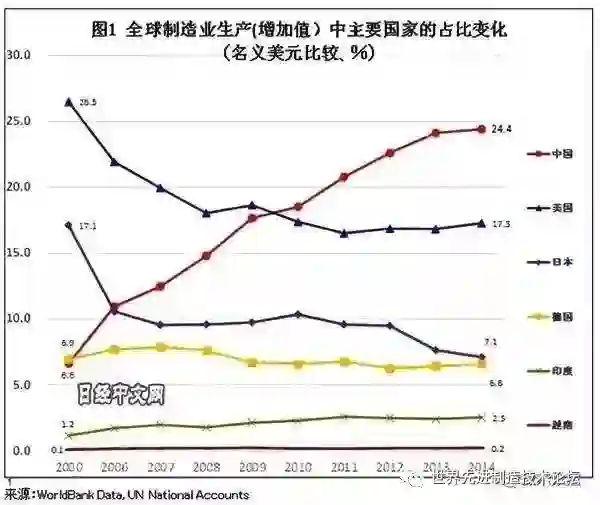在全球制造业增加值的排行榜上,中国领先美日德不是一点半点。即便去掉其中1/4的外资,也还是能压美国一筹。