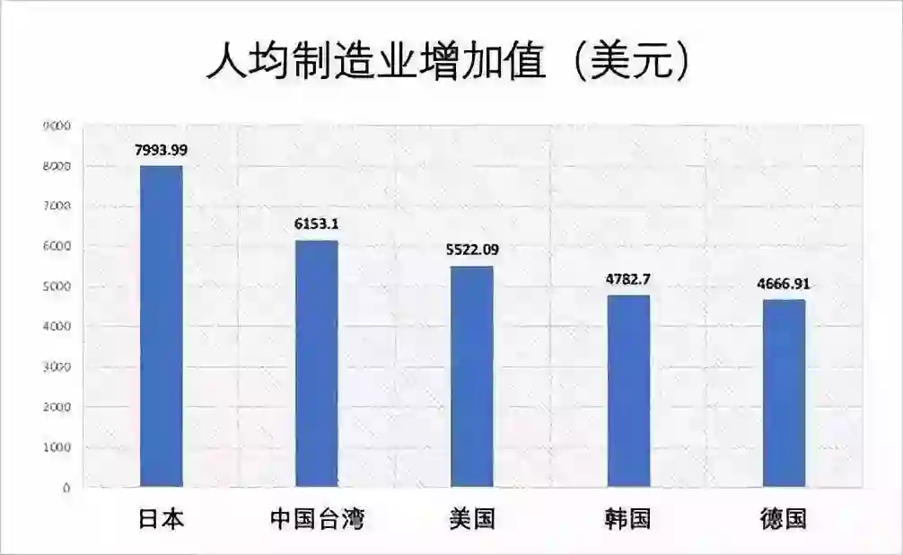 中国(大陆)约等于日美德的1/3到1/4,反而是台湾省的表现能刷新不少人的成见。