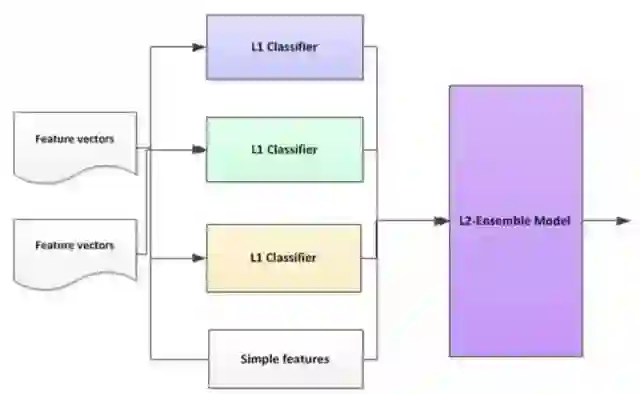 在 Ensemble 框架下,我们分类器分为两个 Level: L1 层和 L2 层。L1 层是基础分类器,L2 层基于 L1 层,将 L1 层的分类结果形成特征向量,再组合一些其他的特征后,形成 L2 层分类器(如 SVM)的输入。这里需要特别留意的是用于 L2 层的训练的样本必须没有在训练 L1 层时使用过。