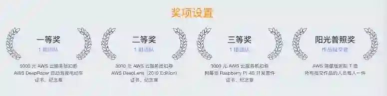 为了更好的激励大家产出创意,主办方准备了丰厚的奖项,除价值数千元的云服务抵扣券、支持深度学习的摄像机 AWS DeepLens、树莓派 Raspberry Pi 4B 开发套件外,一等奖团队成员每个人还可以获得一辆