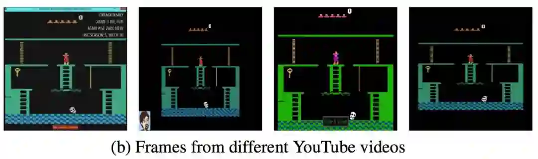 这篇文章也是采取了行为复制的思路,而专家示范取材于YouTube上的人类玩家游戏的视频。但如果直接应用最简单的行为复制模仿学习,是存在以下两个问题的:1. 如下图所示,由于尺寸,分辨率等原因,测试时的画面与学习的视频有细微不同,观察抽象得到的State也不同。2. 视频中并没有动作信号(键盘操作),所以不能直接拟合Action。
