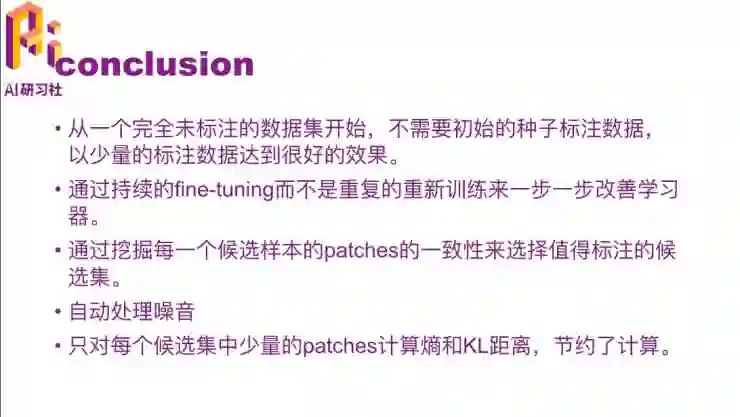从标注数据来说,从一个完全未标注的数据集开始,刚开始的时候不需要标注数据,最终以比较少量的数据达到很好的效果;
