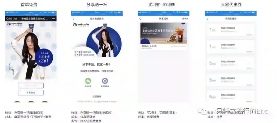1)首单免费:用“免费喝一杯大师咖啡”的特权Cover“下载APP(高成本)”的转化成本。