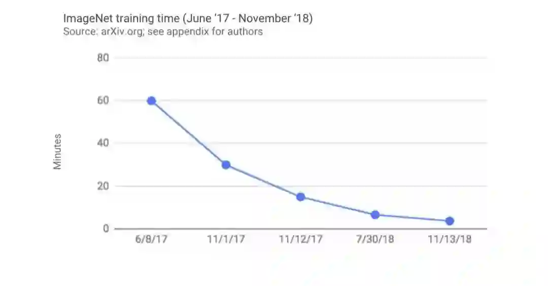 就性能而言,人工智能算力继续飙升,尤其是在计算机视觉等领域。通过测量ImageNet的基准性能,该报告发现,在18个月内,最准确图片分类模型,训练时间从“小时左右”降至“4分钟左右”。训练速度快了大约16倍。其他领域,比如物体分割,在短短三年内就提高了72%的精度。