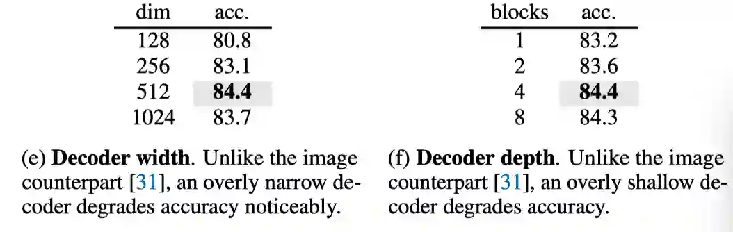 作者探索了MAE对视频数据的简单扩展,得出了一些有趣的观察结果: