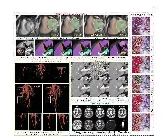 卷积神经网络(CNN)[1] -[4]因其能够以数据驱动的方式学习高度复杂的表示形式,对医学成像领域产生了重大影响。自其复兴以来,CNN已经在许多医学成像模式中表现出显著的改进,包括x线摄影[5],内窥镜[6],计算机断层摄影(CT)[7],[8],乳房x线摄影图像(MG)[9],超声图像[10],磁共振成像(MRI)[11],[12],正电子发射断层摄影(PET)[13],等等。CNN中的主力是卷积算子,它在局部进行运算并提供平移等方差。虽然这些特性有助于开发高效和可推广的医疗成像解决方案,但卷积操作中的局部接受域限制了捕获长程像素关系。此外,卷积滤波器在推理时具有不适应给定输入图像内容的固定权值。
