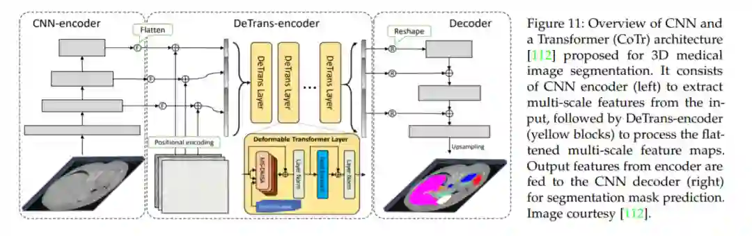 最后,我们首次全面回顾了Transformers 在医学成像中的应用。我们简要介绍了Transformer模型成功背后的核心概念,然后提供了Transformer在广泛的医疗成像任务中的全面文献综述。具体介绍了Transformers在医学图像分割、检测、分类、重建、合成、配准、临床报告生成等方面的应用。特别是,对于每一个应用,我们提出了分类法,确定了应用特定的挑战,并给出了解决它们的见解,并指定了最近的趋势。尽管它们的表现令人印象深刻,但我们预计,在医学成像领域,Transformers仍有很多探索工作要做,我们希望这项调研为研究人员进一步推进这一领域提供了一个路线图。