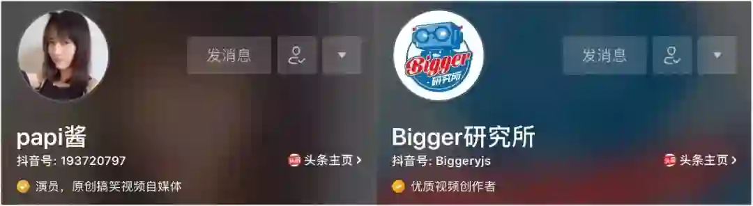 一是之前主要在微博等平台,做5分钟左右横视频的KOL,以@papi酱和@Bigger研究所 为代表,现在也会专门在抖音平台做1分钟以内的竖视频;