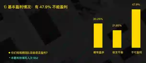 据CNNIC最新数据,截至今年6月,全国短视频用户规模接近6亿。不过,去年今日头条的一则报告显示,调研的约1000个短视频团队中,47.9%的团队还不能盈利。
