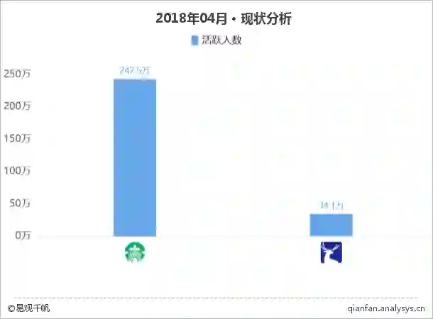 2018年4月瑞幸咖啡、星巴克中国APP活跃人数对比