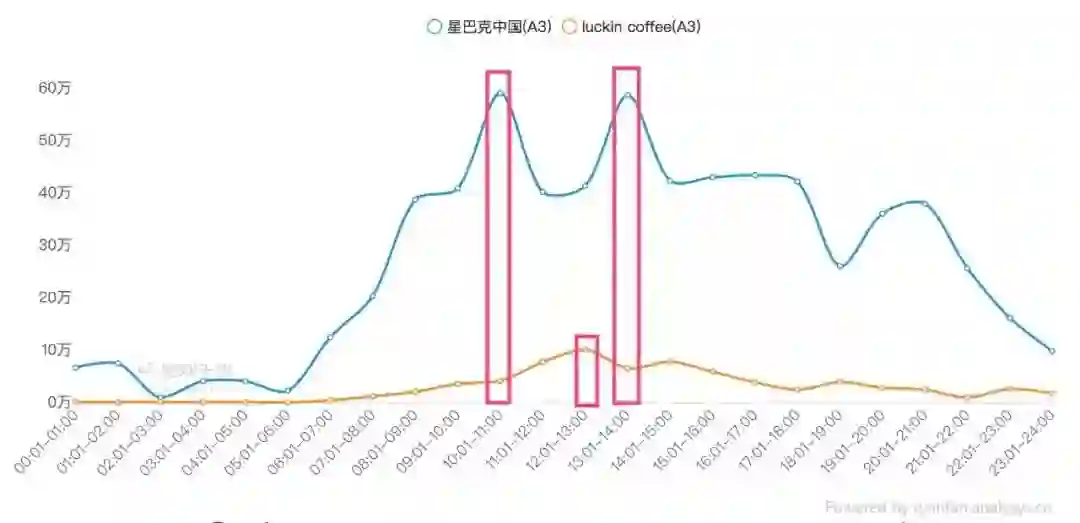 瑞幸咖啡、星巴克中国APP用户分时使用时段对比
