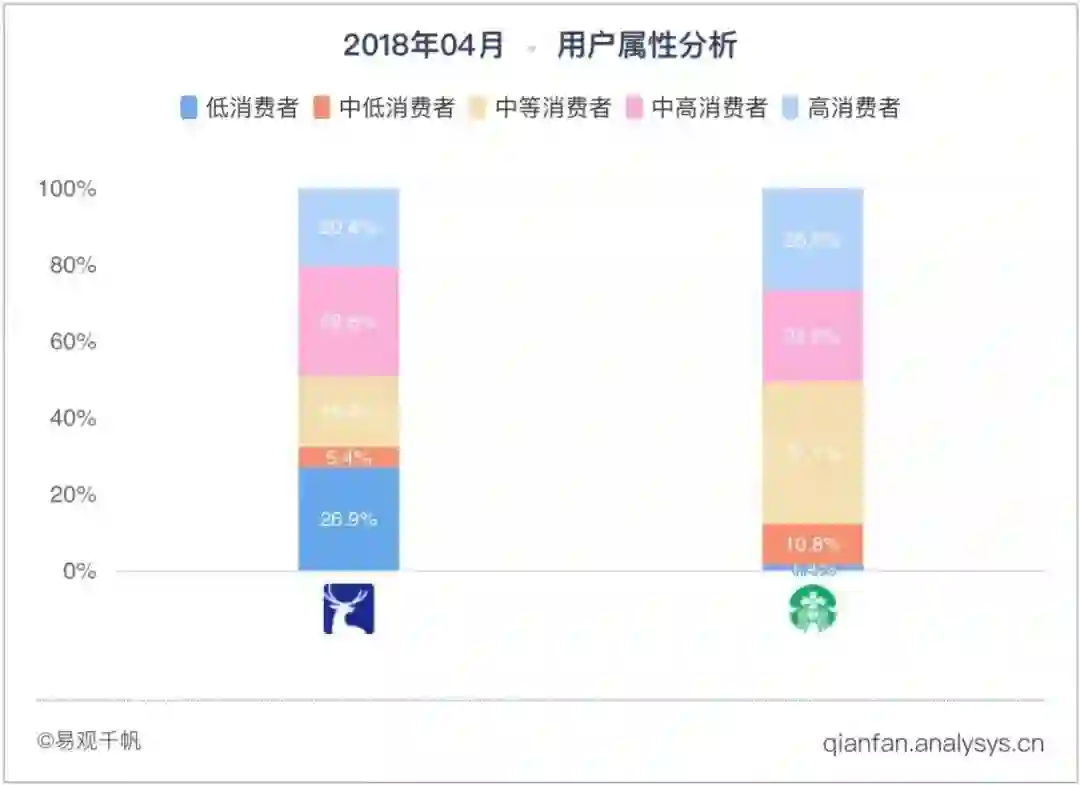 瑞幸咖啡、星巴克中国APP用户消费能力对比